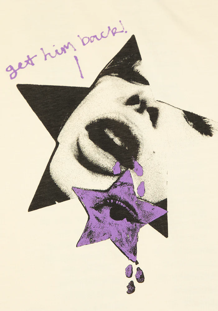 ivory unisex tee featuring olivia rodrigo "get him back!" screen-printed graphic on front and GUTS world tour dates on back
