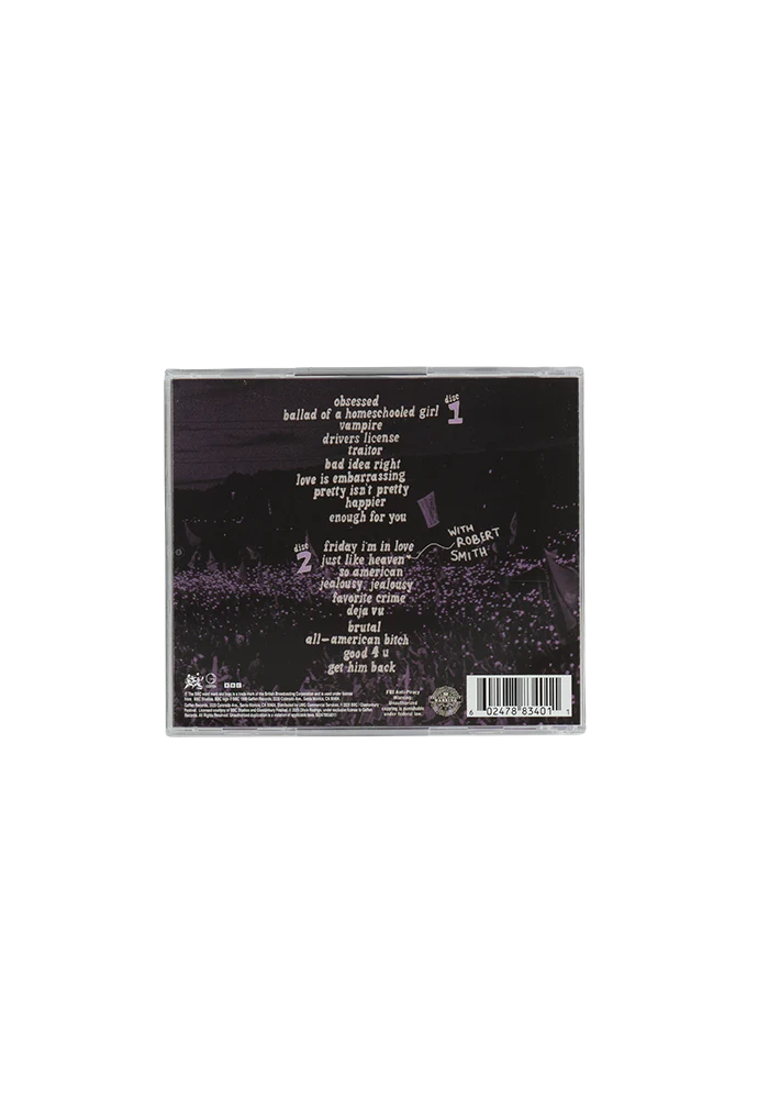 Olivia Rodrigo releases Live From Glastonbury (a BBC recording). the cd encompasses Oliviaâs entire set from Glastonbury 2025 â Â including tracks from her record breaking albums SOUR and GUTS, as well as duets of âFriday Iâm In Loveâ and âJust Like Heavenâ with The Cureâs Robert Smith.Â